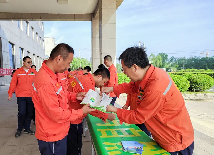 各单位分别组织开展六五世界环境日宣传活动。企业充分发挥新媒体平台作用,利用短视频、动漫、公益广告等形式组织开展线上宣传。从绿色消费、绿色出行、垃圾分类等多个方面组织线下活动,通过漫画宣传、发放生态环境知识手册、有奖答题、条幅签字承诺等多种形式宣传环境保护的重要性。引导员工自觉履行生态环境保护责任,像保护眼睛一样保护生态环境。践行简约适度、绿色低碳、文明健康的生活理念和生活方式。