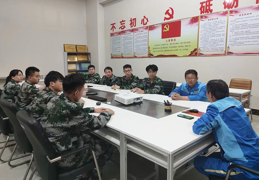 甲胺公司新进人员见面会上,公司经理王存申正在为新进人员上“入职第一课”,提出殷切期许和要求。“希望你们能够发挥自身优势,立足岗位提升技能,尽快成长为能够独当一面的复合型人才。”