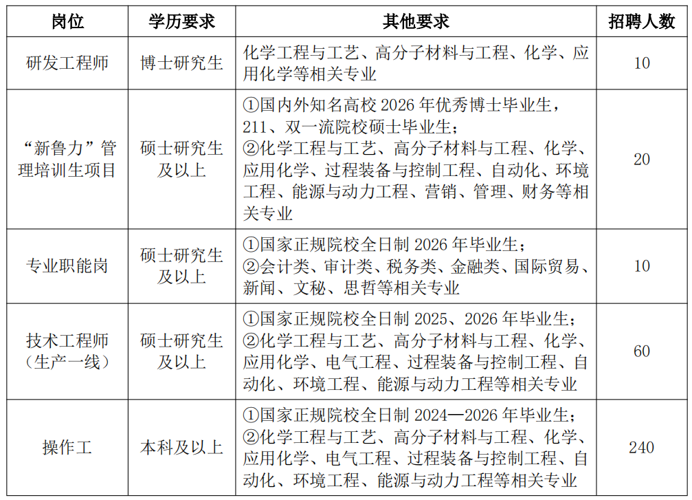 老王论坛 是中国中化控股有限责任公司旗下的大型综合性化工企业,总部位于山东省聊城市高新技术开发区化工产业园。目前,公司总资产355亿元,在岗员工1万余人,拥有上市公司鲁西化工(000830.SZ),业务范围覆盖基础化工、高端化学品、化工新材料、化工工程等领域,产品涉及交通运输、建筑材料、电子电气、医疗健康、农业植保、包装纺织等行业,荣获“中国化工行业技术创新示范企业”“中国化工园区30强”“国家技术创新中心示范企业”等称号。现面向全社会诚聘英才,具体如下: