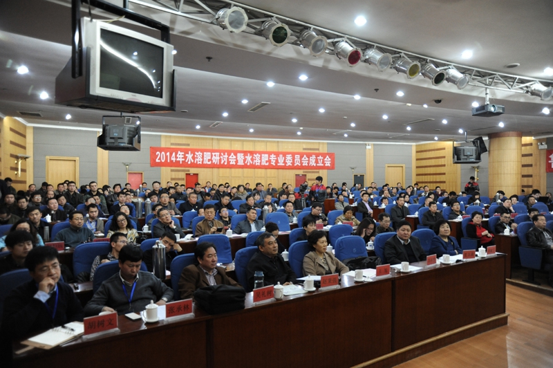 主办的2014年全国水溶肥研讨会暨水溶肥专业委员会成立会在山东聊城举行。本次会议的主题详解水溶肥的政策、肥料登记及标准、水肥一体化基础设施、水溶性基础原料等议题。重点介绍我国农业和农村经济结构发生变化后,农民对水肥一体化需求日益迫切的背景下,未来水溶性肥料的发展趋势。国内政府代表、行业专家、对水溶肥充满期望的知名企业代表和媒体近400人参加了研讨会。