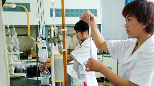 集团化验人员正对尿素氮含量指标进行分析检测