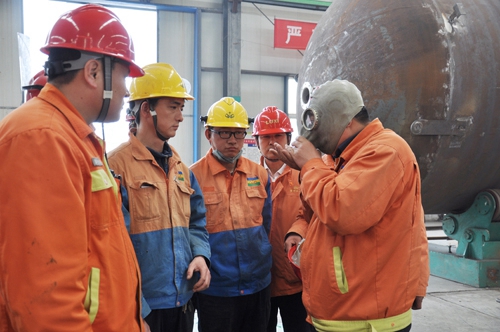 五是开展受限空间作业现场模拟演练,由企业领导对受限空间作业特点、危害、安全措施、防护器材等进行了详细讲解。