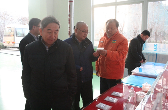 领导一行在聚碳酸酯装置观看企业的相关产品