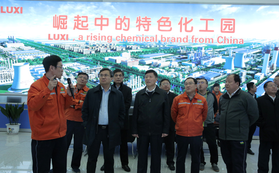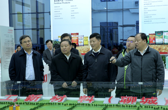集团董事长张金成在产品展示中心重点向领导介绍了园区化工新材料产品的生产情况、制造与工程板块集研发设计、制造安装和运行管理与一体的优势以及园区的整体建设和未来规划情况。