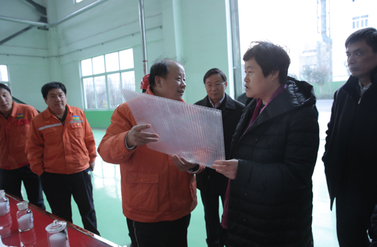 在聚碳酸酯装置现场,看到由聚碳酸酯为原料制作的阳光板、耐力板时,李主任仔细询问了该产品的产能、生产规模、产品性能、生产成本以及下游市场情况。当了解到该产品的部分工艺指标赶上甚至超过了欧美发达国家的标准时,李主任强调:一定要在产品的关键技术上实现突破,为国内聚碳酸酯行业的发展起到带头和引领的作用。