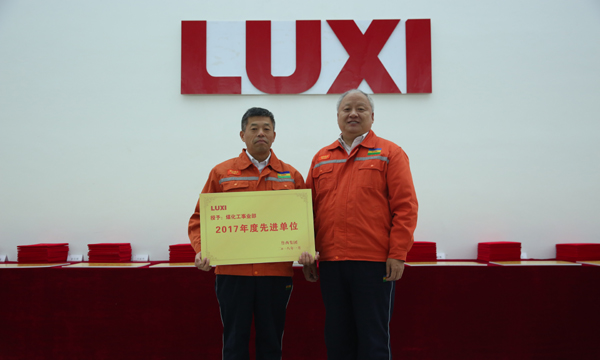 图为董事长为先进单位煤化工事业部颁奖。
