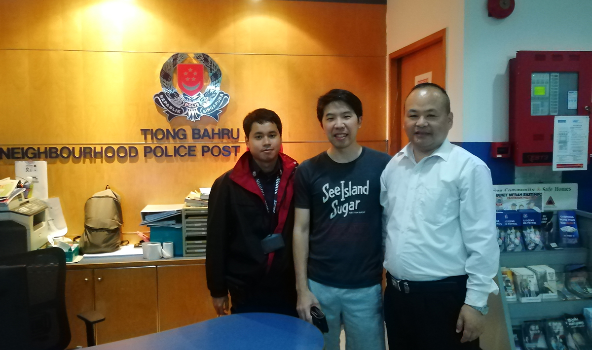 两人环望四周寻找钱包失主无果后,考虑到失主丢失钱包后肯定十分焦急,立即第一时间将钱包送到附近的警察局并说明情况。经办警务人员根据钱包中的有关联系人信息,几经周折,最终寻找到钱包的失主Loh Mingquan(罗明全)先生。