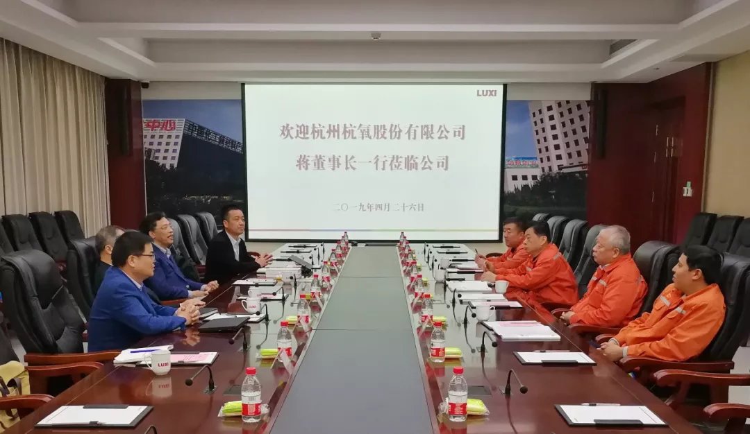 张金成董事长对杭氧公司高层的来访表示非常欢迎,同时也感谢杭氧公司多年来对集团发展提供的大力支持和帮助,并高兴的向对方介绍了集团今年在新旧动能转换方面的经验做法和取得的成果,以及集团下一步的发展规划和前景。