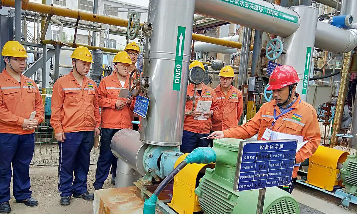 化工园区参观了紧靠绿树成荫的赵牛河畔的室外实训基地。在负责室外基地管理人员马勇科长带领下,现场实地观看了鲁西室外实训基地建设及实训情况。马科长介绍说:实训基地整体划分为操作技术实训区和安全培训实训区。操作技术实训区包括循环洗涤泵、离心风机、罗茨风机、多级泵等操作实训区;安全培训实训区包括上锁挂签操作和高危作业实训等。每天可满足200余名员工接受各专业的培训和实操训练。
