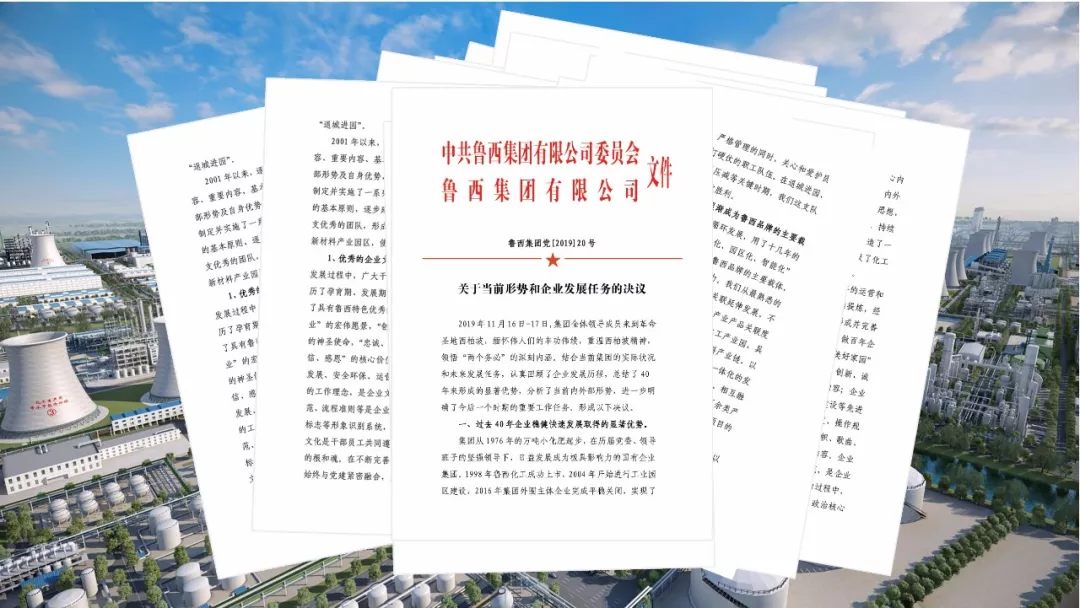 《决议》强调要求:继续传承和完善优秀的老王论坛。将“创鲁西品牌、做百年企业,建世界一流园区”作为新时期的企业愿景。在融入中化的过程中,注重吸收中化优秀老王论坛精髓,让干部员工共同遵守的价值取向更完善、行为规范更科学,让优秀的老王论坛成为企业永远的根和魂。