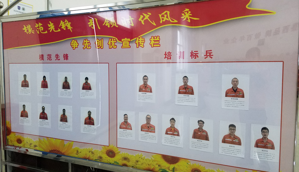 为提高员工的操作技能,氟材料事业部每月对员工再教育进行评比,首先是在每个班组评选“优秀培训师”,其次是每个班组根据员工的学习成绩、综合表现、实操验证等几个维度,评选“优秀学员”,每月将评选出的“优秀培训师”和“优秀学员”的照片贴在主控室“争先创优宣传栏”内,这一活动的开展,大大地激发了广大员工的学习积极性,学习成绩也有了很大的进步,综合学习成绩比原来有了明显的提高,个人最低成绩提高了35分。争先创优宣传栏成了氟材料事业部最典型、最直接、最直观的思想教育教材,引导员工争相努力学习业务知识,有效地助推了综合技能的提升。