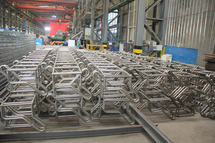 在厂房内看到几处摆放整齐的自行车驻车器光洁瓦亮,与之前的废旧设备形成鲜明的对比。陪同人员告诉记者,这些驻车器全部是用拆解再利用的不锈钢换热管,经过酸洗钝化后制作而成的。为了使这些拆解的不锈钢换热管能够发挥最大的价值,事业部拆解的不锈钢换热管优先用于设备制作,其次再用于驻车器、气源管、穿线管、护栏等。这是第一批驻车器,这批自行车驻车器总计是三千多个车位,目前已安装使用一千个车位,使用效果良好。