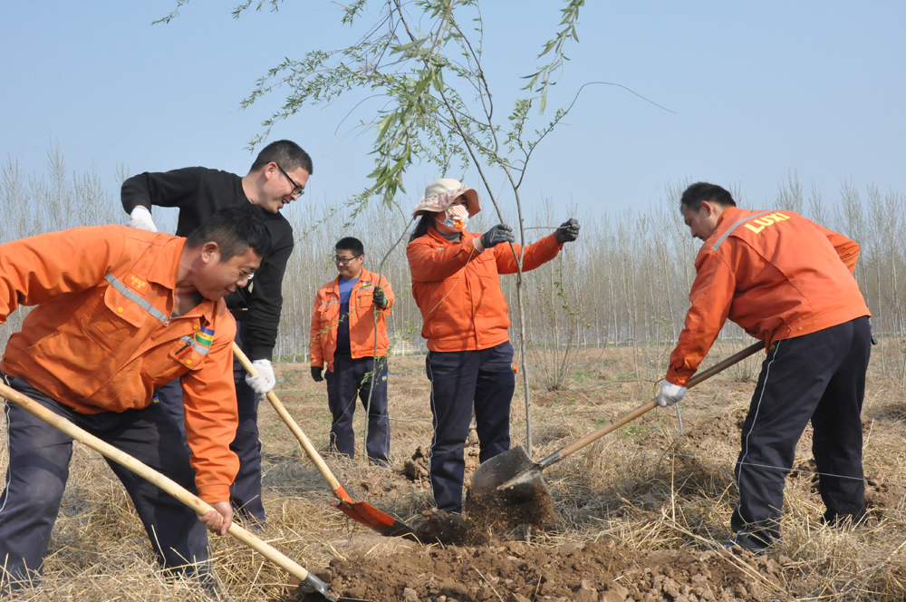 在劳动现场,各部室领导亲自带头,干部员工积极参与,放线、挖坑、移树、修剪、培土、浇水,曾经寂静的原野里人流涌动,呈现出一片热火朝天的劳动场面。综合服务部投用挖坑机,应急救援中心出动消防泵,配合浇水工作。经过大家的共同努力,第一阶段植树7200棵,绿化面积达120余亩,成行成列,平地之上蔚然成林。虽然脸被晒黑了、被风吹干了、手上磨出了茧,但看到一片拔地而起的树林,春风拂来,绿意盎然,大家心头充满了劳动的喜悦。