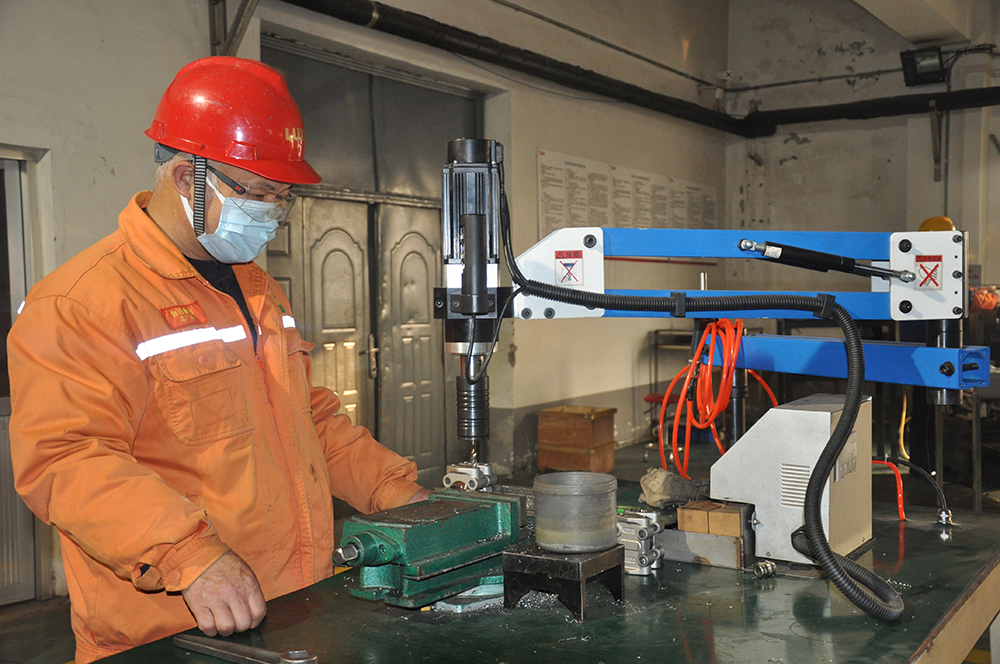 为了提高流量计线圈制作的制作效率,他用下脚料的钢板做成支架,找来废旧电机,通过加装按钮计数器,研发制作了一套自动线圈缠绕机,该装置的运行有原来的人工缠绕10个改为自动输入完成线圈匝数50个,工作效率提高了10倍,并且线圈紧密度得到提升,实现了效率和质量的双重改善。
