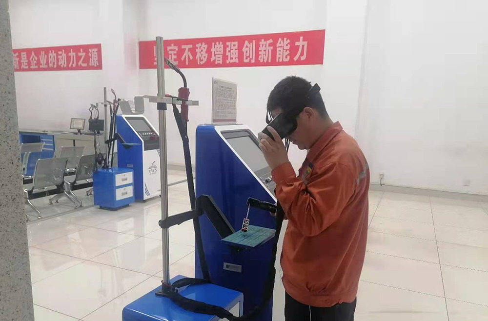实训中心的焊接实训区,看到两位员工正戴着VR眼镜,手持自动焊枪,专注的在焊接试板上进行焊接练习。在这里根本看不到实景焊接中焊花飞溅的景象。培训负责人介绍说:“这是焊接模拟仿真实训区,该系统是新一代环保、节能、通用型焊接操作技能实训与考核平台。练习过程中,不使用焊条,原料0消耗;不产生烟气,空气0污染。适用于焊接零基础的员工进行培训。能够满足员工焊条电弧焊、氩弧焊、CO2气体保护焊、机器人编程教学操作基础知识培训及安全考核模拟。”