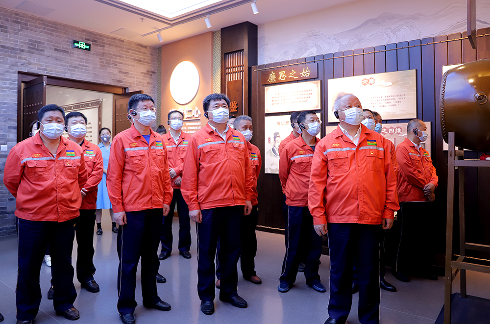 参观结束时,党委书记张金成带领全体参观人员重温入党誓词,坚守初心使命。最后,观看了聊城市国土资源系统廉政警示教育片。