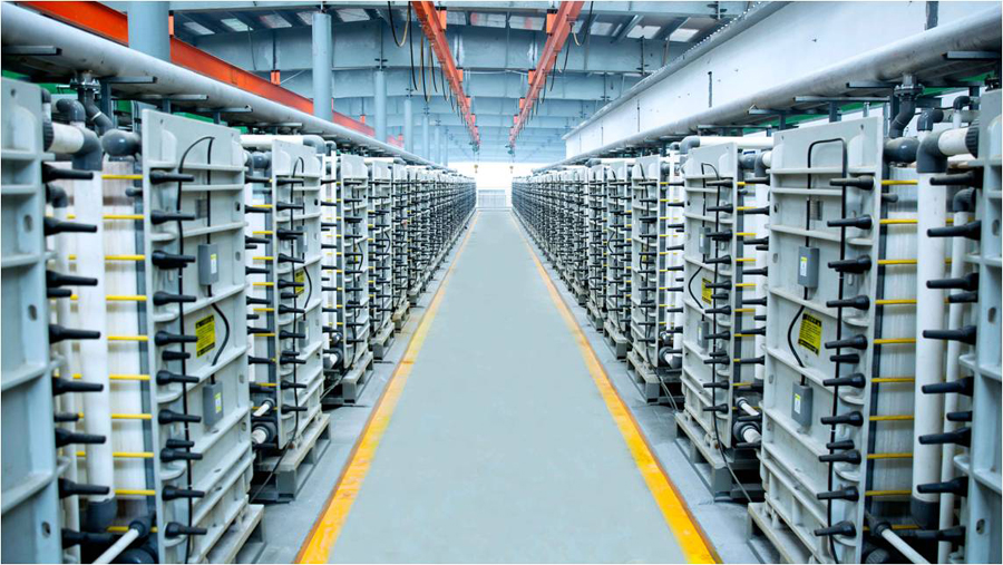 自2016年初开始策划实施废水零排放建设项目,项目分二期建设,目前已全部竣工投产,实现了国内首个分盐零排放项目的成功运行。该项目采用化学除硬、絮凝沉淀、电渗析、反渗透、纳滤分盐、MVR蒸发结晶等技术,解决了反渗透浓水、循环水排污水和生化处理后废水的排放问题,并全部回收循环利用,改善了园区周边水资源生态。水中盐分经分离结晶后作为化工原料使用,实现废物资源化、减量化,减轻了园区周边及下游土壤的盐渍化,在行业内具有较强的示范引领效应。