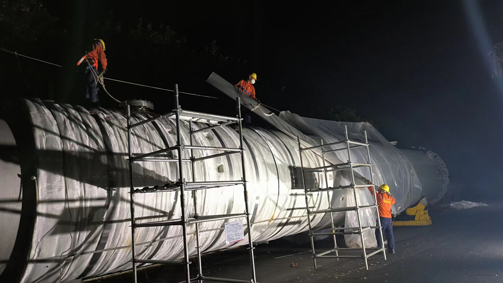 第一工程事业部调度组组长郭兴强正会同吊装公司人员进行现场吊装勘查,策划塔体就位情况,分别对现场路面、场地环境、周围附属物、就位条件、吊装荷载、吊装方式以及对其他施工单位的影响等都进行了全面评估,形成了较为完善的施工方案,为顺利开展吊装工作做好了充分准备。他介绍说:“该项目建设整体联动性强,作业片点多,相关工种交叉多,做好各项工作的排序是推进项目进程的有效途径。所以调度组每天组织有关施工单位召开项目推进会,共同会商施工过程中的难点及具体解决方案,甚至为了避开交叉作业,采取倒班作业方式,昼夜奋战,互不影响,尽量提高施工进度。特别注重解决现场施工过程中遇到的制约性问题,加强沟通与协调,积极开展现场办公,做到解决问题在基层,努力畅通施工环境和条件,尽力释放各种有利因素,做到和谐、安全、文明、高效施工,努力提高施工效率。”