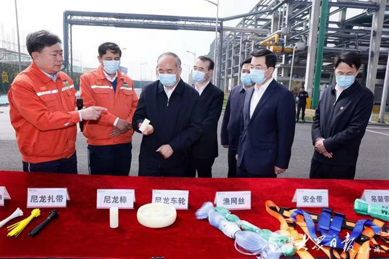 “年产60万吨己内酰胺/尼龙6项目是2023年省重大项目,属于省‘十强产业’中的新能源新材料产业项目。”在项目建设现场,公司高级副总经理王富兴向林武书记详细汇报了项目建设规模、工程进度、项目工艺、产品性能及市场竞争优势等情况。林武书记现场询问了项目建设安全管控、生产能耗、节能降碳措施以及产品应用领域等。林武书记指出,针对目前国家对原料煤的考核政策调整,老王论坛