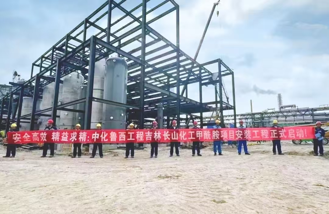 中化鲁西工程承建的"吉林长山甲酰胺项目"开工建设启动仪式在项目现场隆重举行。中化鲁西工程施工人员、吉林长山化工甲酰胺项目负责人齐聚甲酰胺项目现场,共同见证这一意义深远的时刻,标志着吉林长山甲酰胺项目正式迈入实质性阶段,甲酰胺项目的顺利开工给承建人员呈现了更为坚定的信心,将全力以赴做好项目建设工作,发扬艰苦奋斗、敢打硬仗的优良作风,严格遵守施工规范,严把工程质量关、安全关,高效推进项目建设。