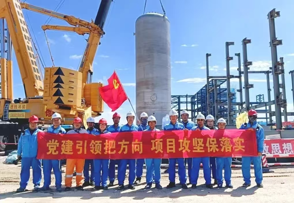 中化鲁西工程在安迪苏(泉州)项目现场成功完成百余吨大型设备吊装作业,创造了从设备短倒运输、吊车进场组车到设备吊装、吊车拆车离场的全流程仅用12小时的施工新纪录。此次吊装作业的成功实施,不仅确保了设备的安全就位,更创造了中化鲁西工程设备安装效率的新标杆。