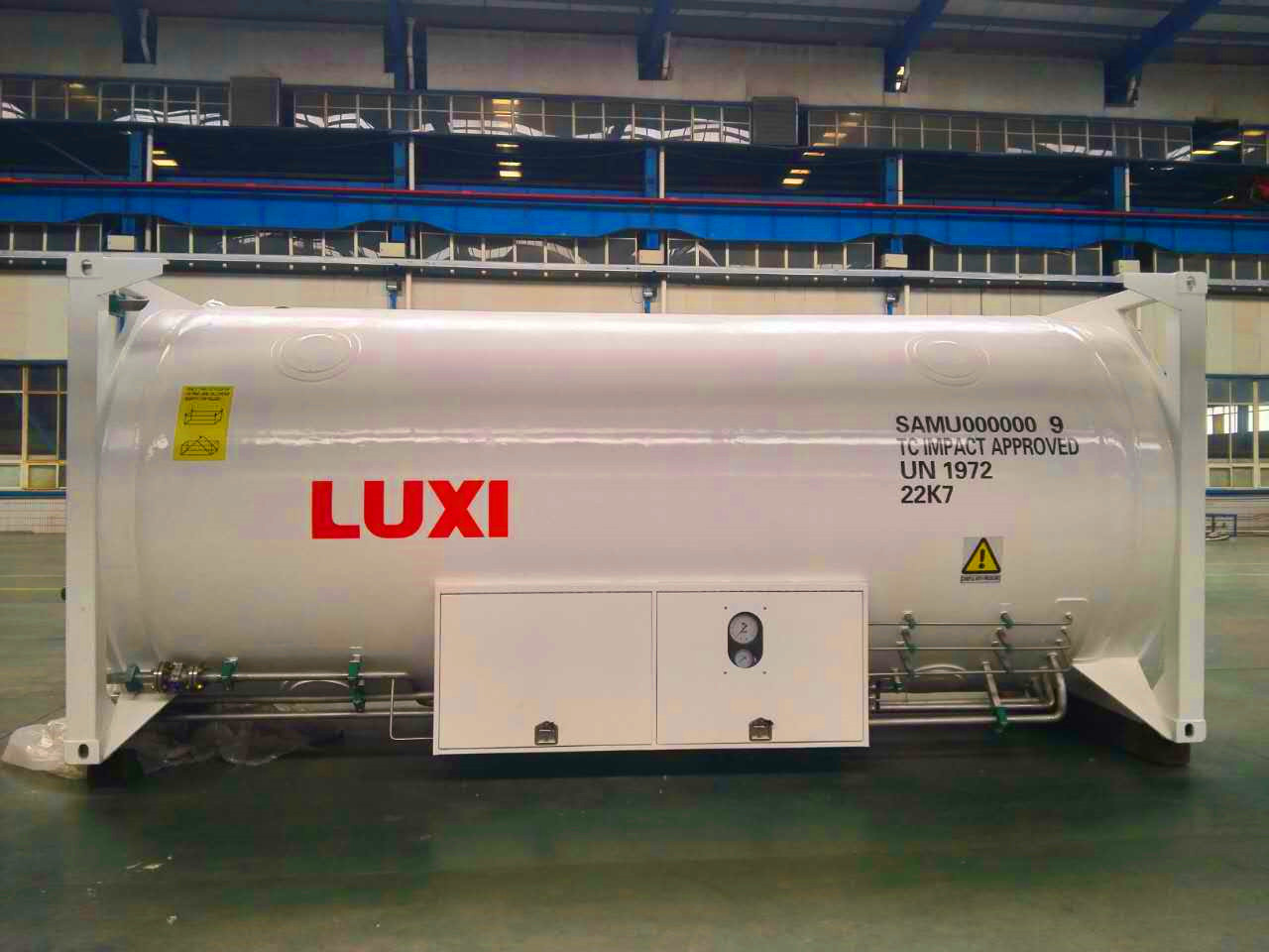 目前,鲁西新能源装备集团制作的T75罐箱有两种规格:20英尺、40英尺。该产品是由低温冷冻液体储罐、气化器、管系、阀门等设备集中安装至标准尺寸金属框架内,严格执行欧标ADR、EN13530、CSC、IMDG等国际标准规范,主要用于充装液化天然气(LNG)、液氧(LO2)、液氮(LN2)、液氩(LAr)等低温液体,可用于公路、铁路及水路运输。罐箱相对于槽车和储罐,有无可比拟的经济、高效便捷、安全、美观、环保等优势。罐箱的使用,不会有繁琐而耗时的槽车与储罐等倒运过程,可在公路、铁路、水路之间直接转换运输方式,操作简单快捷,一步到位,可谓真正做到“门到门”运输。