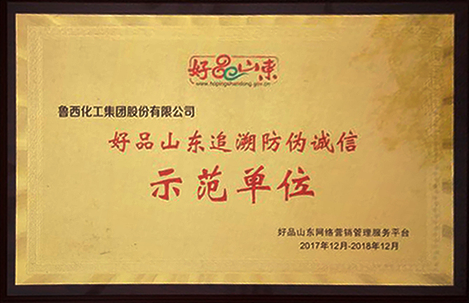荣获“好品山东追溯防伪诚信示范单位”称号。