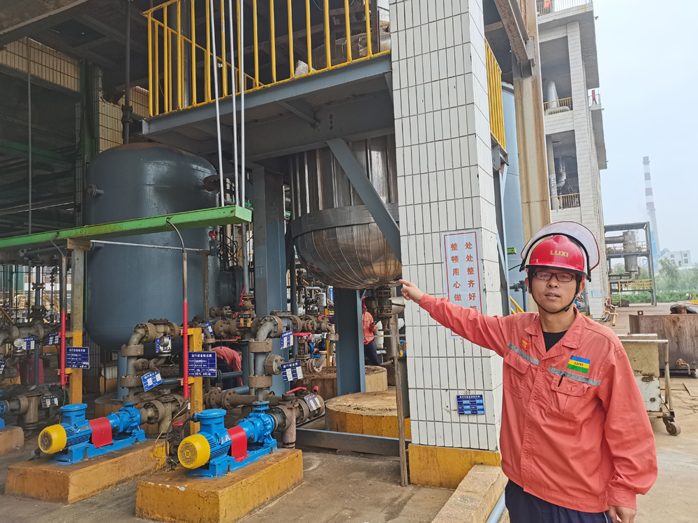 当走到不远处的一套正在运行的塔罐机泵前,一位年轻的员工兴致勃勃的说:“这是一套废料回收系统,它的主要作用是把系统内无法处置的废料集中重新过滤吸收,进行循环再利用。其中除了部分螺丝螺栓外,所有的设备、管线都是利用集团其他装置上一些闲置或者淘汰的废旧设备、管线进行改造的,完全由我们自主设计、自主施工、自主调试投运,现在已经投入使用两个月了,从前没法处置的废料现在经这套系统回收处理后全部达到循环再利用,运行效益不计,仅技改成本,就节省了近100万元!”