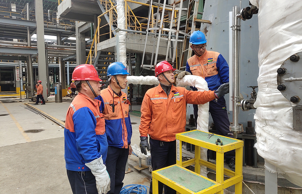 记者发现,此次铺放电缆的管廊西侧属于硫酸罐区,电仪安装队队长卓华斌来到作业现场,第一件事就是进行危险源辨识,在对员工检查各自安全防护用品时,他走到罐区前设置的各个危险化学品安全告知牌前,仔细阅读告知内容。“作为管理人员,我必须第一时间了解掌握作业区域有毒、有害介质理化特性,才能及时将安全防护注意事项传达给员工。”在随后现场集合时,卓队长将相应的安全防护及逃生措施讲解给大家,并再三叮嘱登高作业人员配备好相应的滤毒罐,检查防毒面具无破损后再登高。