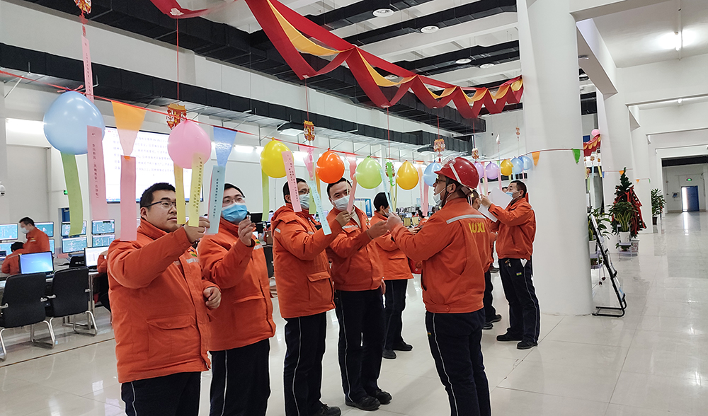 东区主控室里人声鼎沸,彩带飘飞,好不热闹。原来这是 “猜灯谜闹元宵”的现场。气球、彩带、彩旗、灯笼下片悬挂的各色灯谜彩带,引来不少员工驻足猜谜。