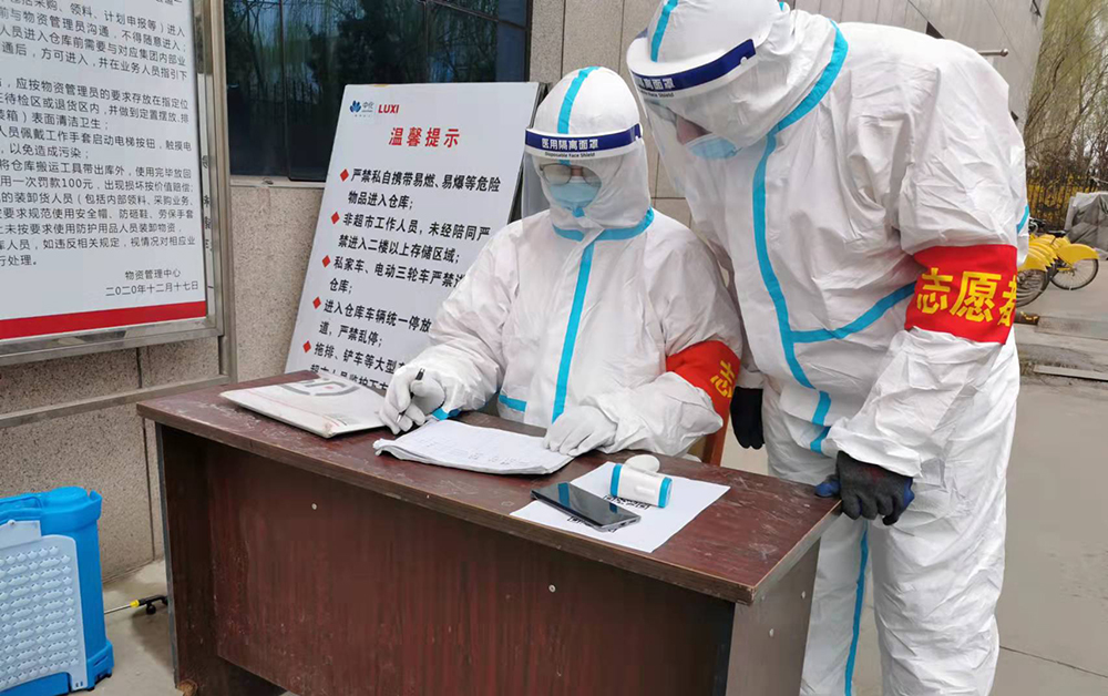 化工机关第二党支部积极落实防疫工作,在物资超市设立党员服务岗,加强到货物资的管控,从货物的起源到中途的走向再到接触的人群,追本溯源,坚决排查到每一件货物,对物流车辆防疫消毒,对司机师傅进行备案登记,行程核查,并组织人员开展卸货作业。