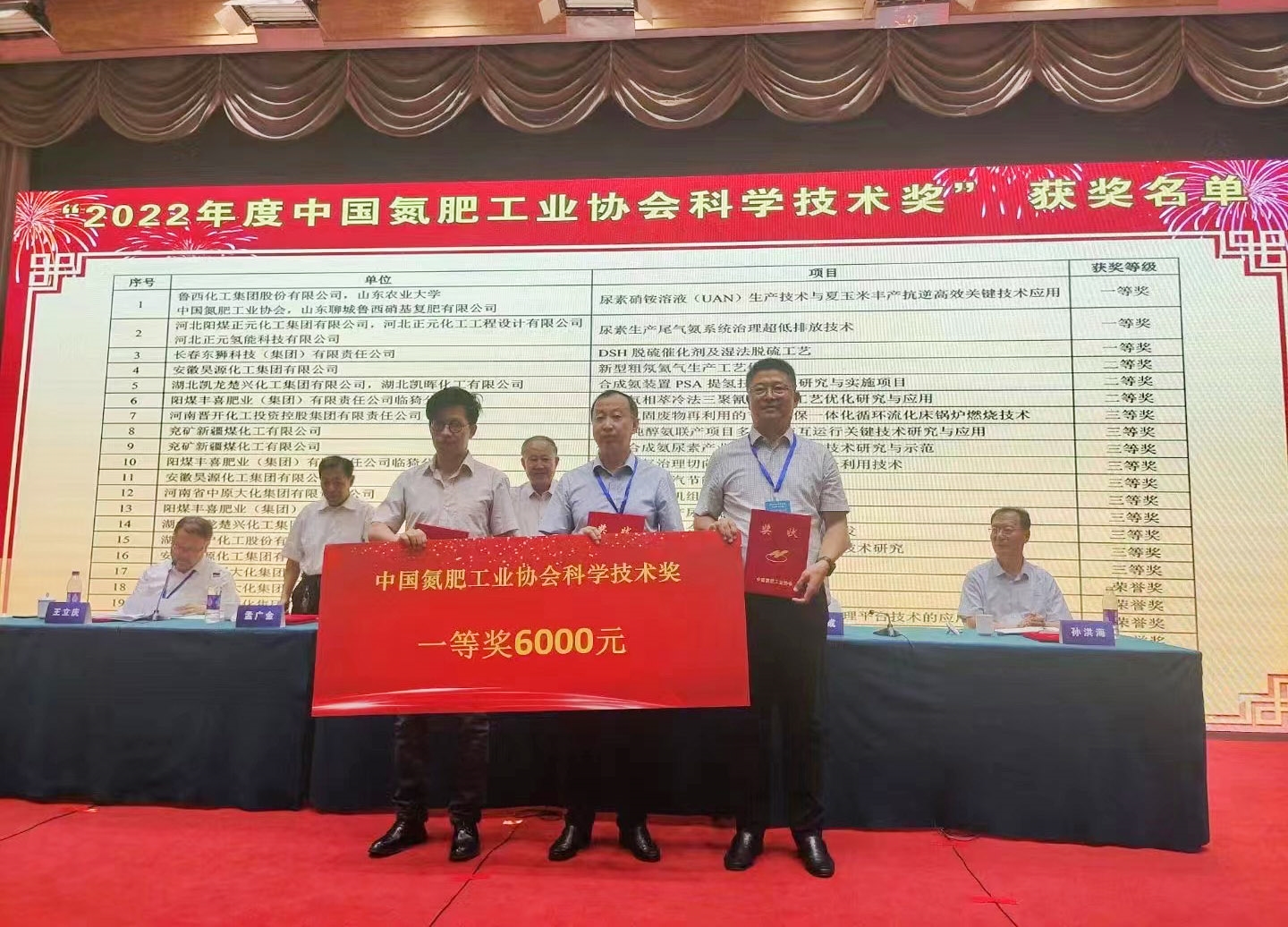 牵头完成的“尿素硝铵溶液(UAN)生产技术与夏玉米丰产抗逆高效关键技术应用”项目,荣获2022年度中国氮肥工业协会科学技术进步一等奖。
