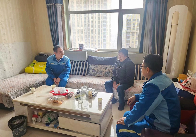 在退休老党员工家中,公司领导与老党员促膝倾谈,拉家常、问寒暖,详细了解他们的生活起居和身体状况,并介绍了企业的发展变化情况,祝福他们身体健康、晚年生活幸福美满。